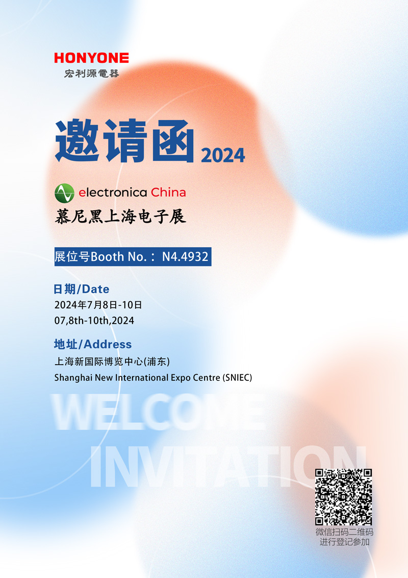 2024 年慕尼黑上海電子展(electronica China)即將于 7 月 8 日至 10 日在上海新國際博覽中心盛大舉辦。今年,HONYONE依舊榮耀出席,展位號為:N4.4932。