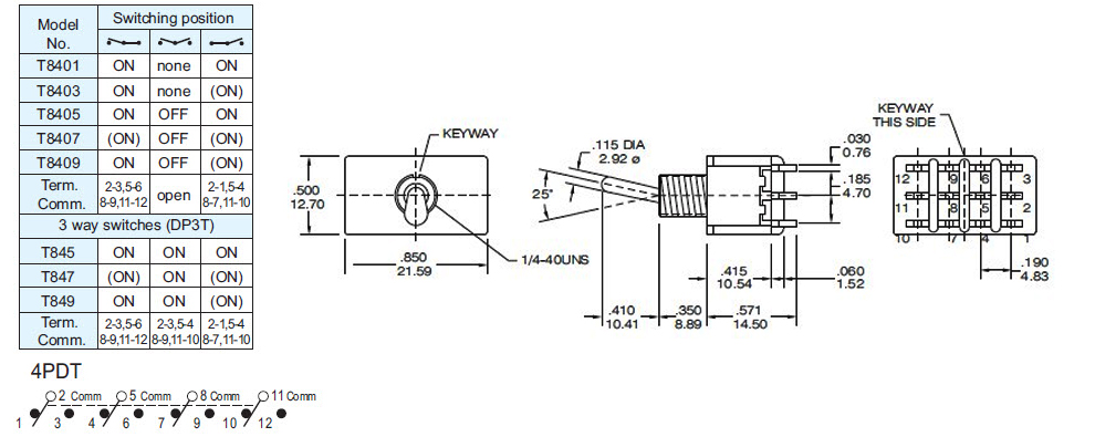 Contact Rating: 5A @125 VAC or 28 VDC (Q contact)