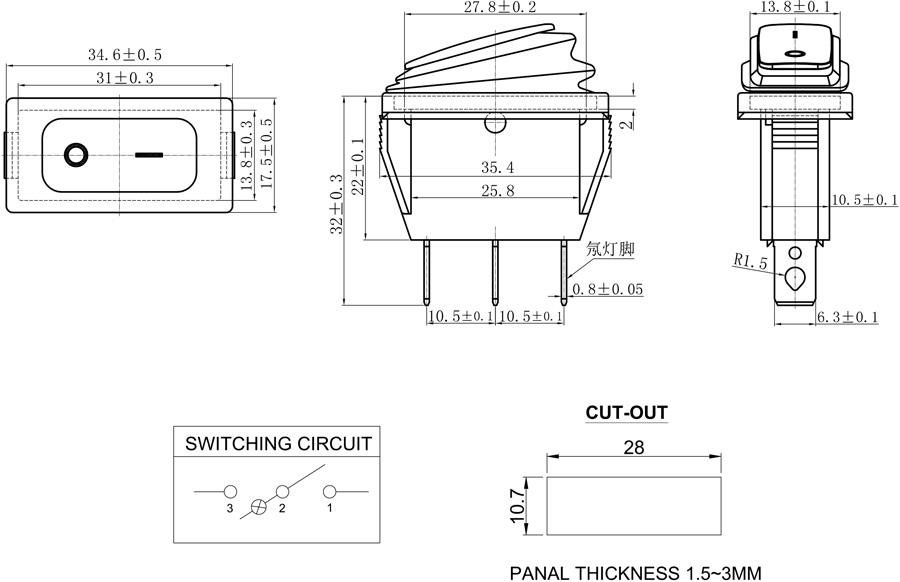 產品型號:WRH-1-110-P5N-BB IP65防水