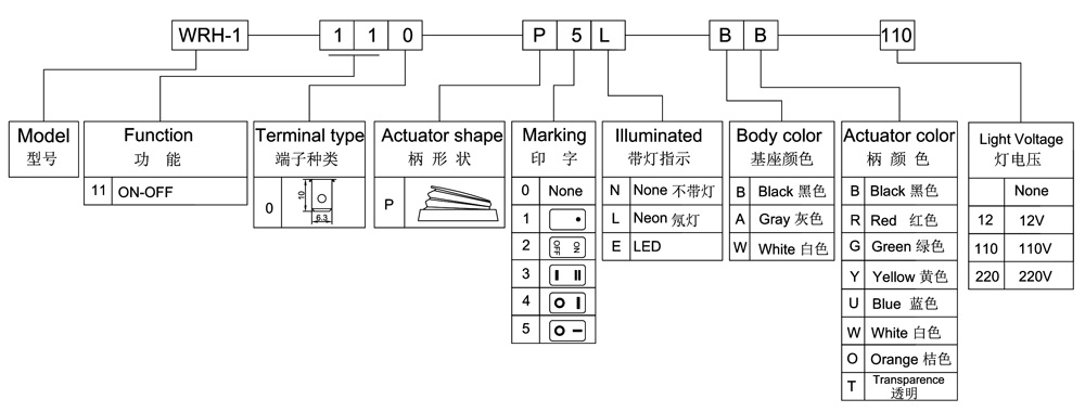 產品型號:WRH-1-110-P5L-BG-110 IP65防水