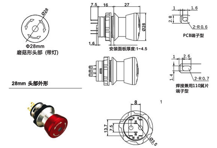 開關(guān)組合:1NO 1NC/ 2NO 2NC