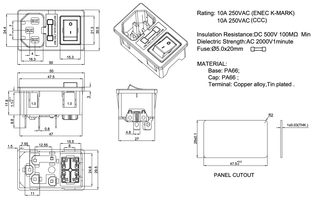 Rating: 10A 250VAC (ENEC K-MARK)