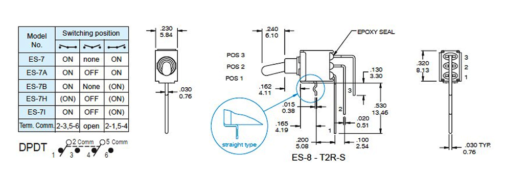 Contact Rating: R- 0.4 VA max @ 20 V AC or DC