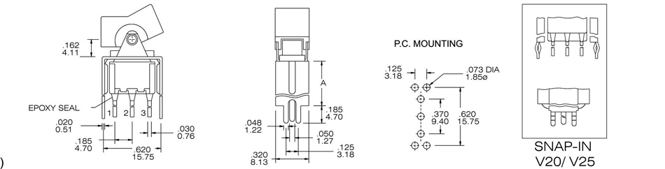 Contact Rating: 5A @125 VAC or 28 VDC (Q terminal)