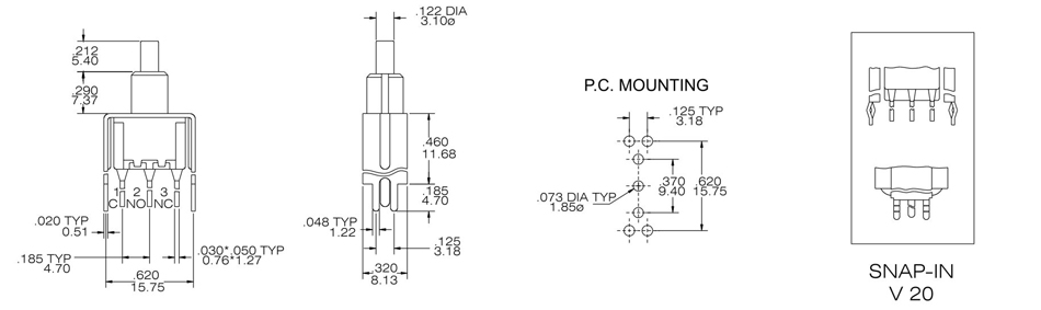 Contact Rating: 1A @125 VAC or 28 VDC