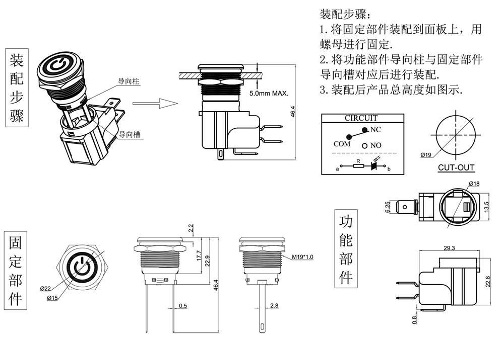 Rating: 16A 250VAC ; .16A 125VAC ;