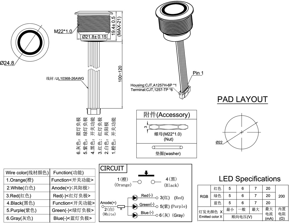 產品型號:PTM22-11M-F-RRGB-S0-H7-S