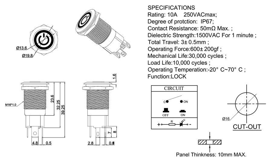 Mechanical Life:30,000 cycles ;