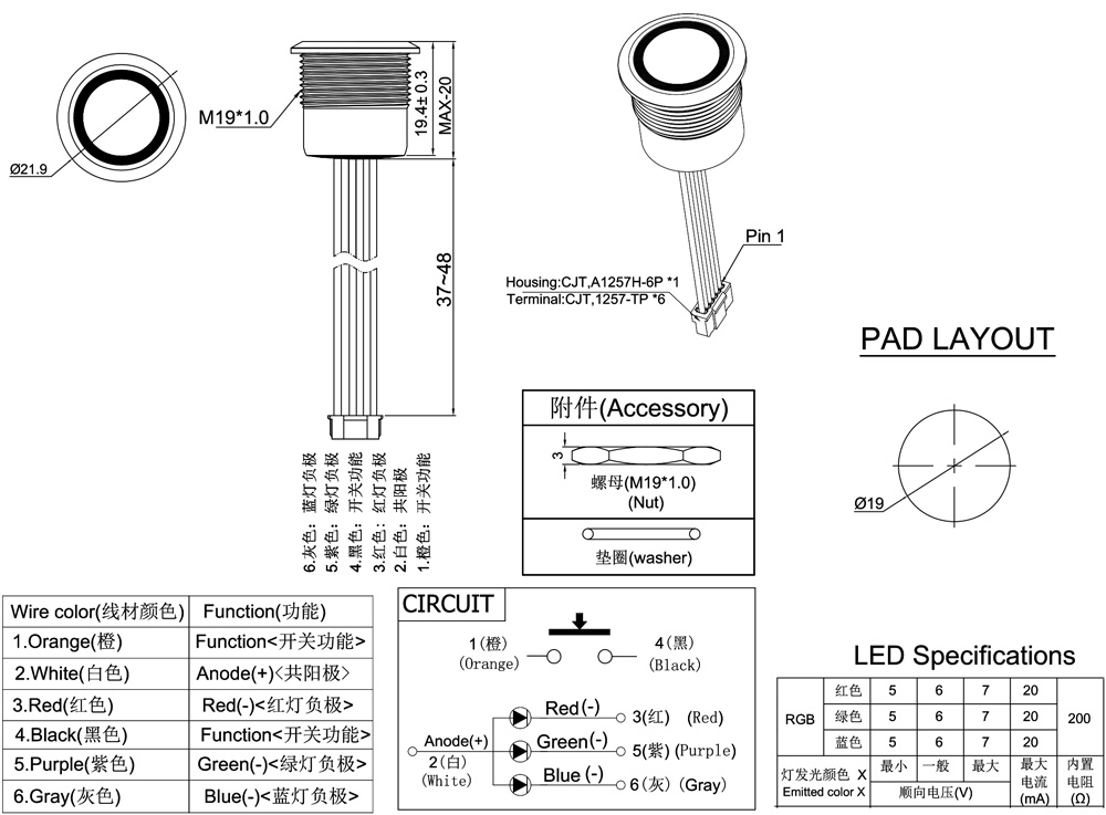 產(chǎn)品型號:PTM19-11M-F-RRGB-A6-H1