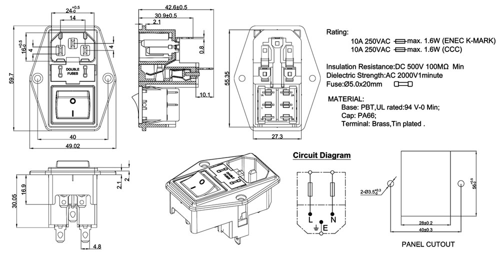 Base: PBT,UL rated:94 V-0 Min;