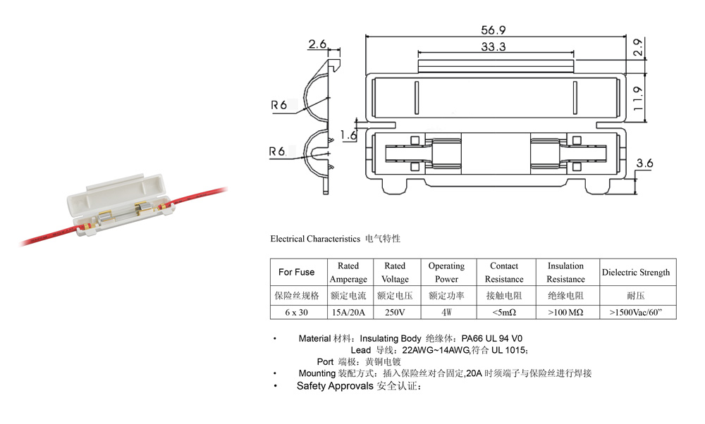 帶線保險絲座(5*20/6*30 fuse)