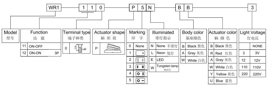 產品型號:WR-1-110-P5L-BU 防水