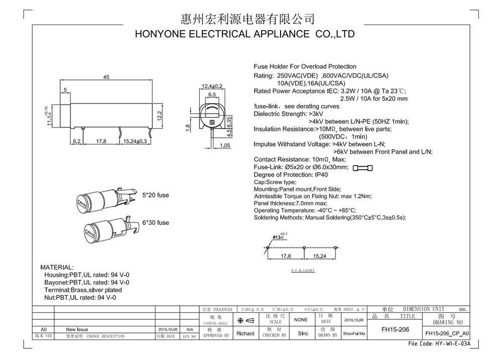 Rating: 250VAC(VDE) ,600VAC/VDC(UL/CSA)