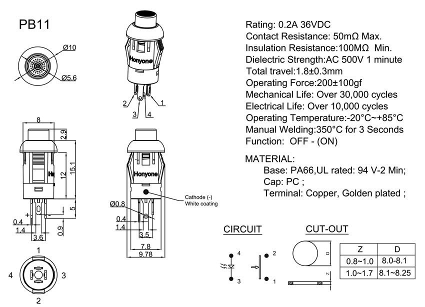 Operating Force:200±100gf