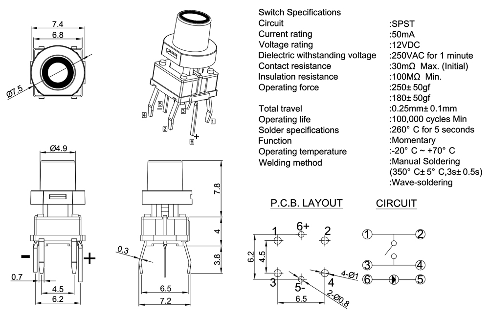 Operating Force :180±50gf or 250+50gf