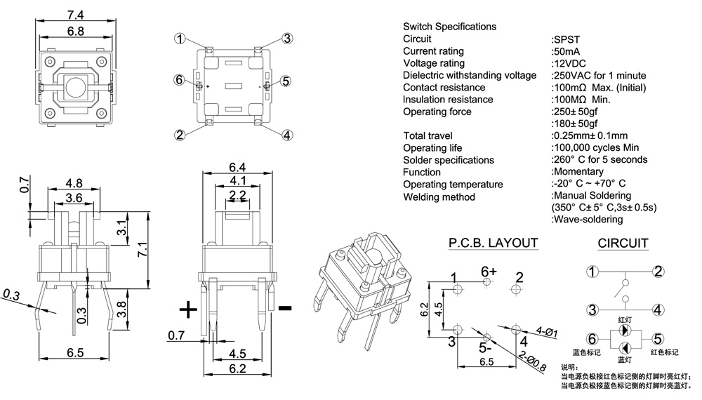 Operating Force :180±50gf or 250+50gf