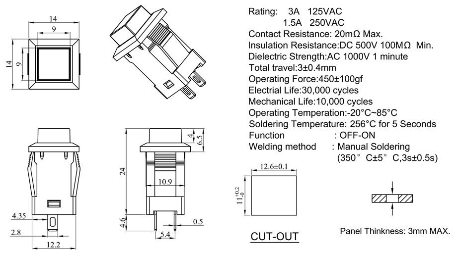 Rating:3A 125V AC 1.5A 250VAC