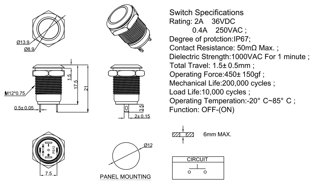 Mechanical Life                :Over 1,000,000 cycles