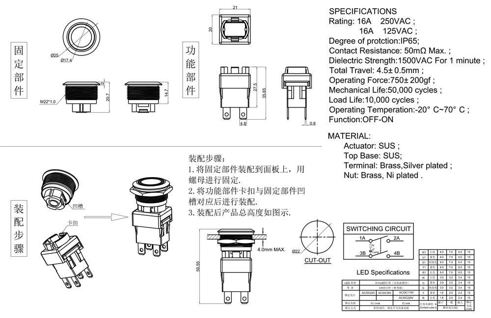 Rating:16A  125VAC;:16A  250VAC;