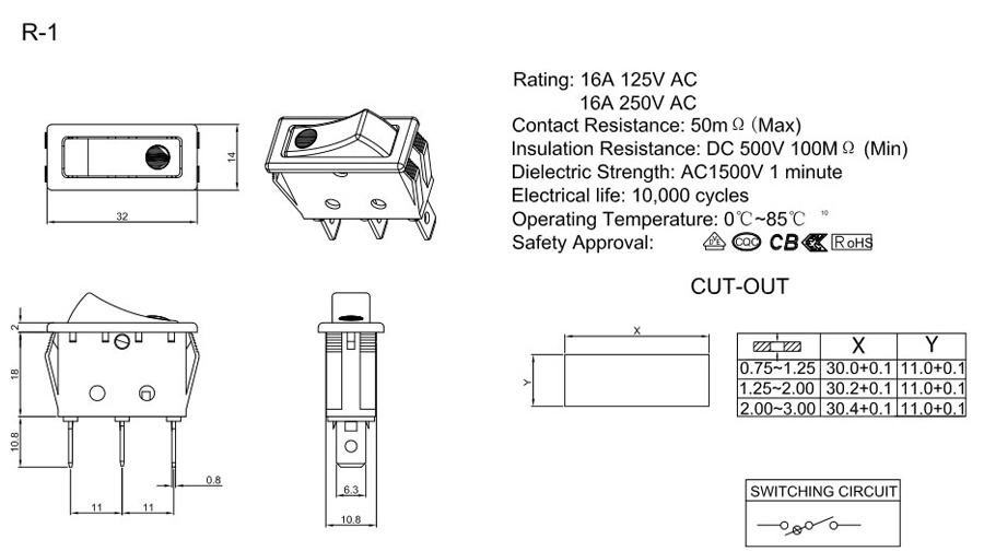 22A 250V AC (ENEC CB CQC)