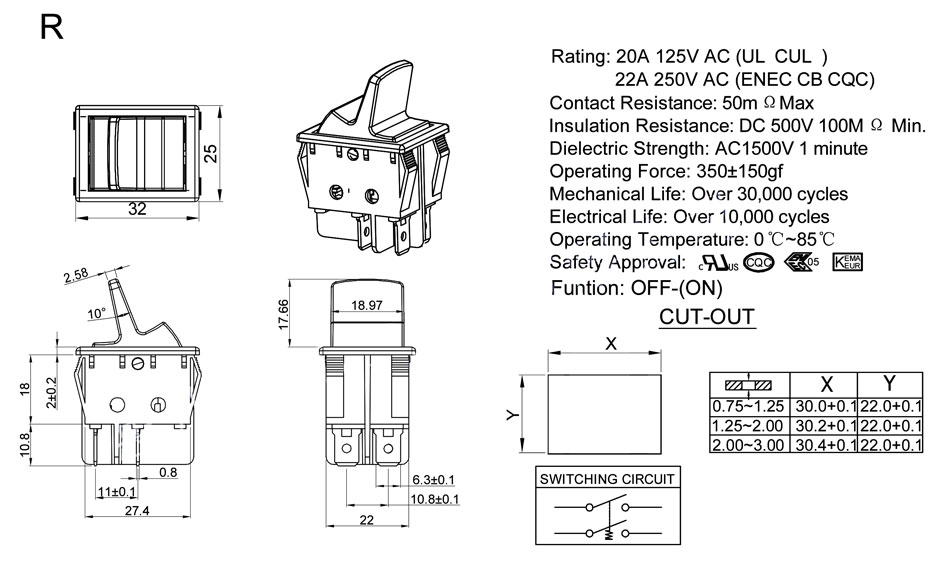Rating:20A 125V AC (UL CUL)