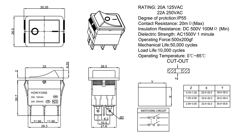 Rating:20A  125VAC