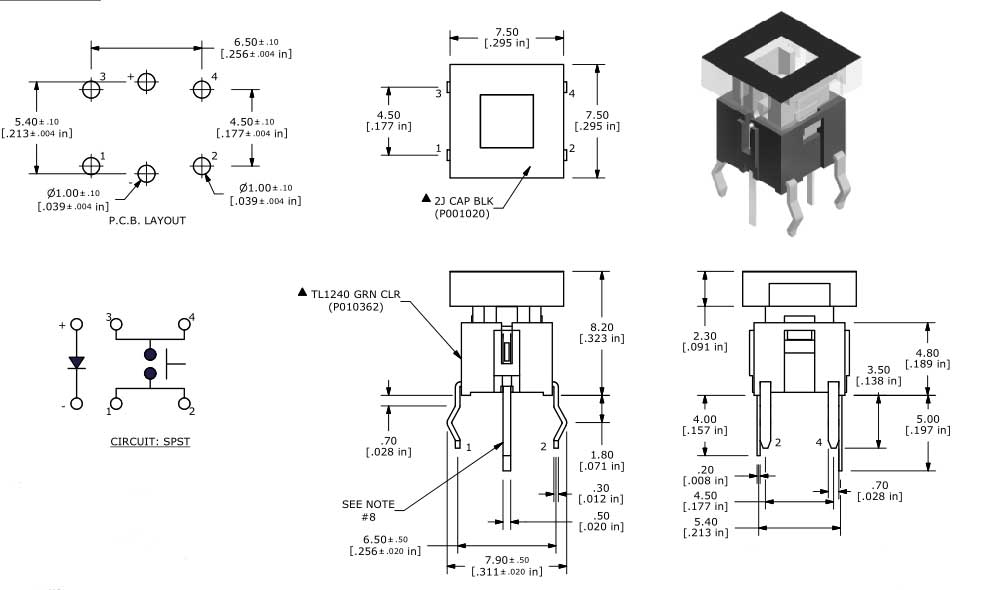 Operating Force                      :180±50gf or 250±50gf