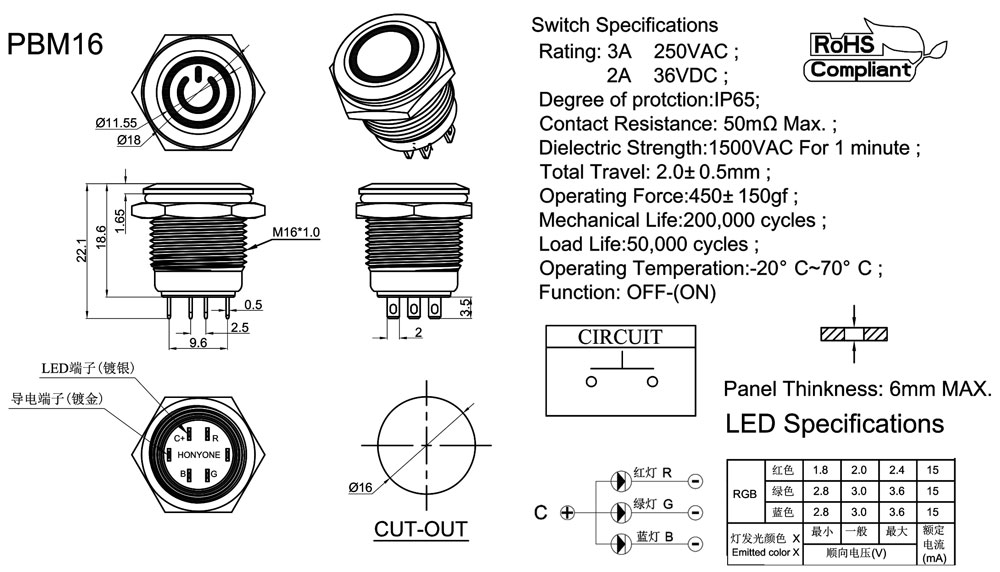 PRODUCT MODEL:PBM16-11M-FP-RGB