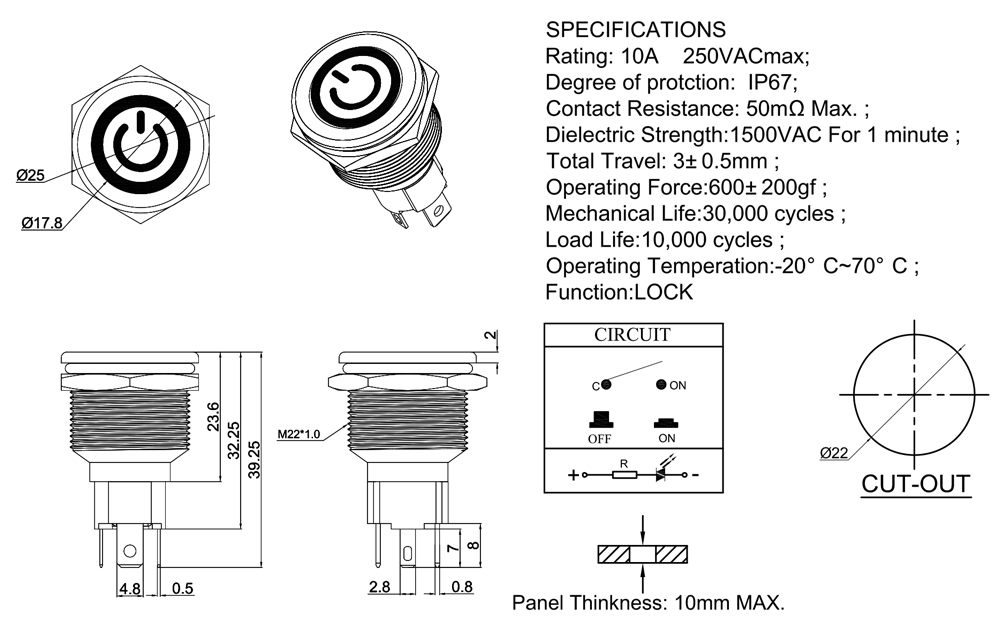 Mechanical Life:30,000 cycles ;