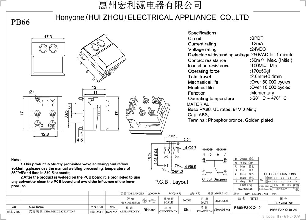 Operating Force :170±50gf