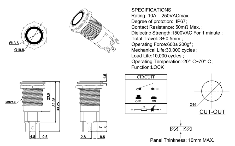 PRODUCT MODEL:PAM16-11Z-F-RR6-S0