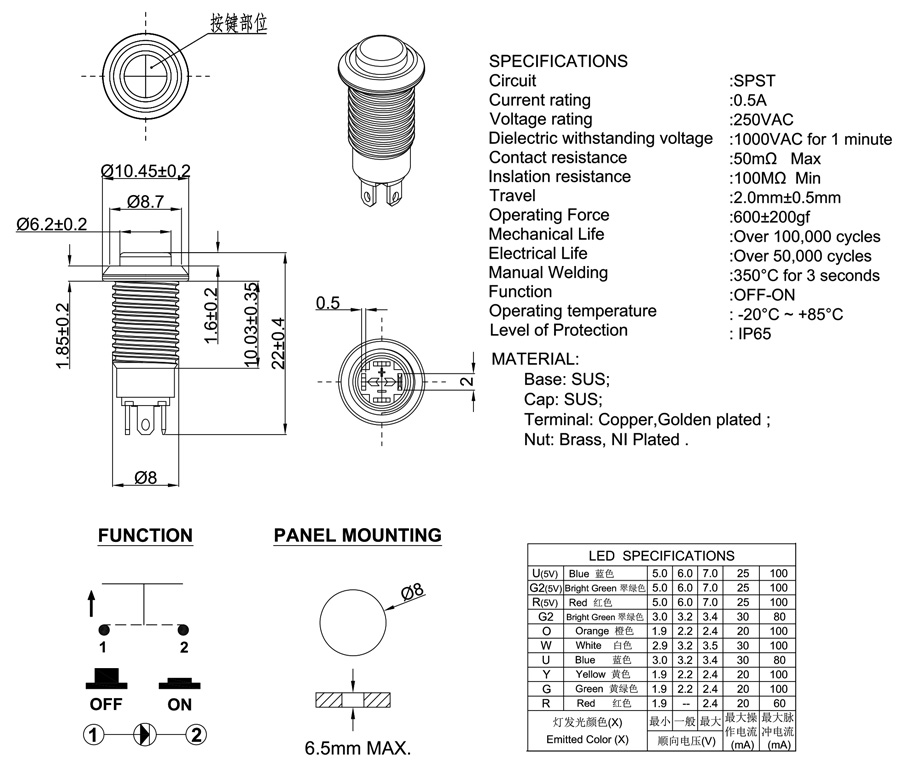 Dielectric withstanding voltage :1000VAC for 1 minute