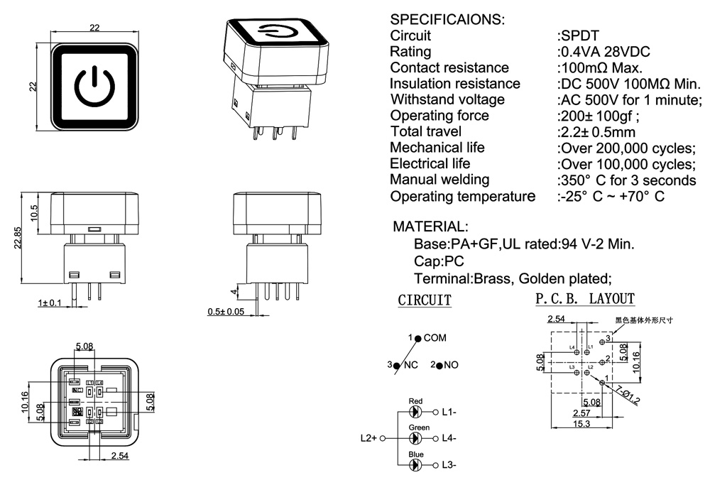 Total travel :2.2±0.5mm