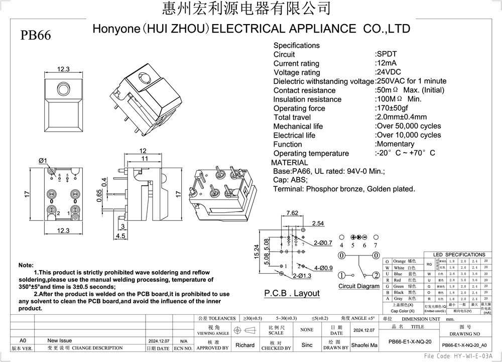 Operating Force :170±50gf