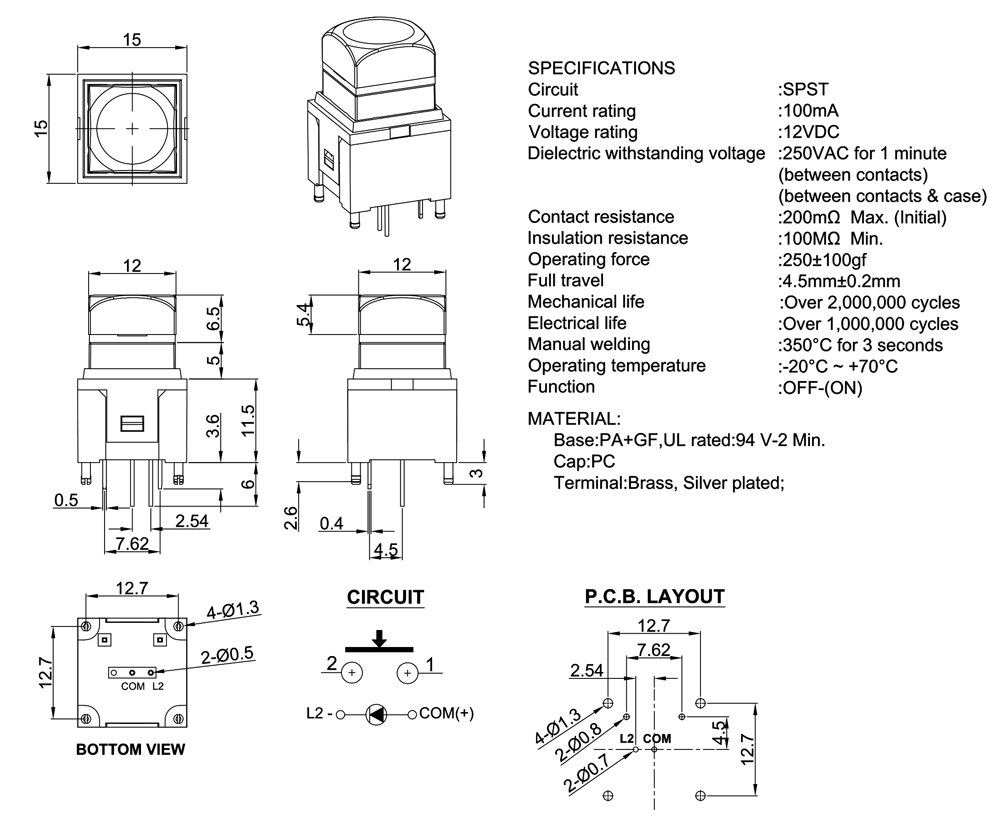 Mechanical life :over 2,000,oo0 cycles