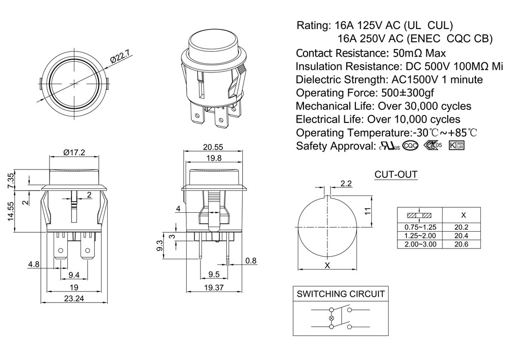 Rating: 16A 125V AC (UL CUL)