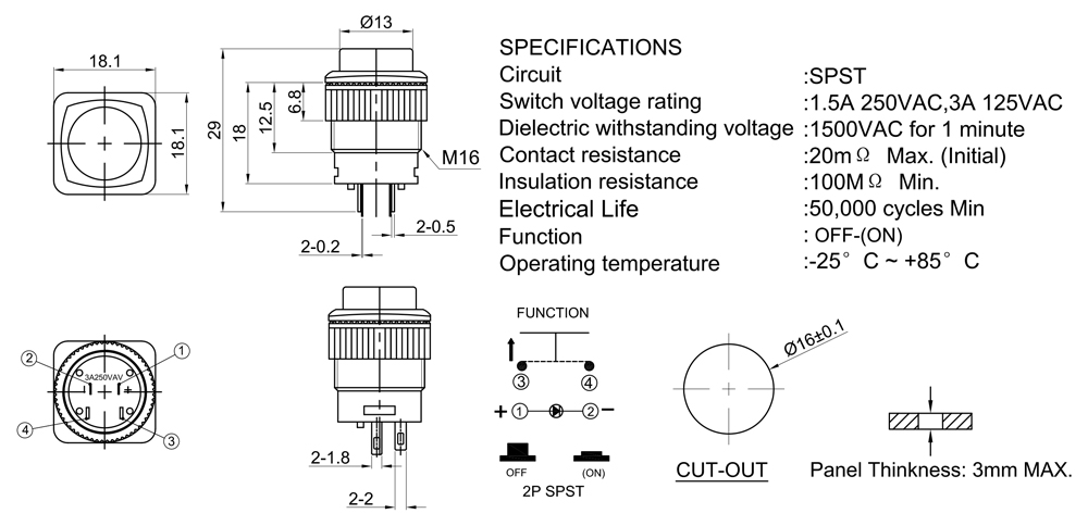 Electrical Life :25,000 cycles Min