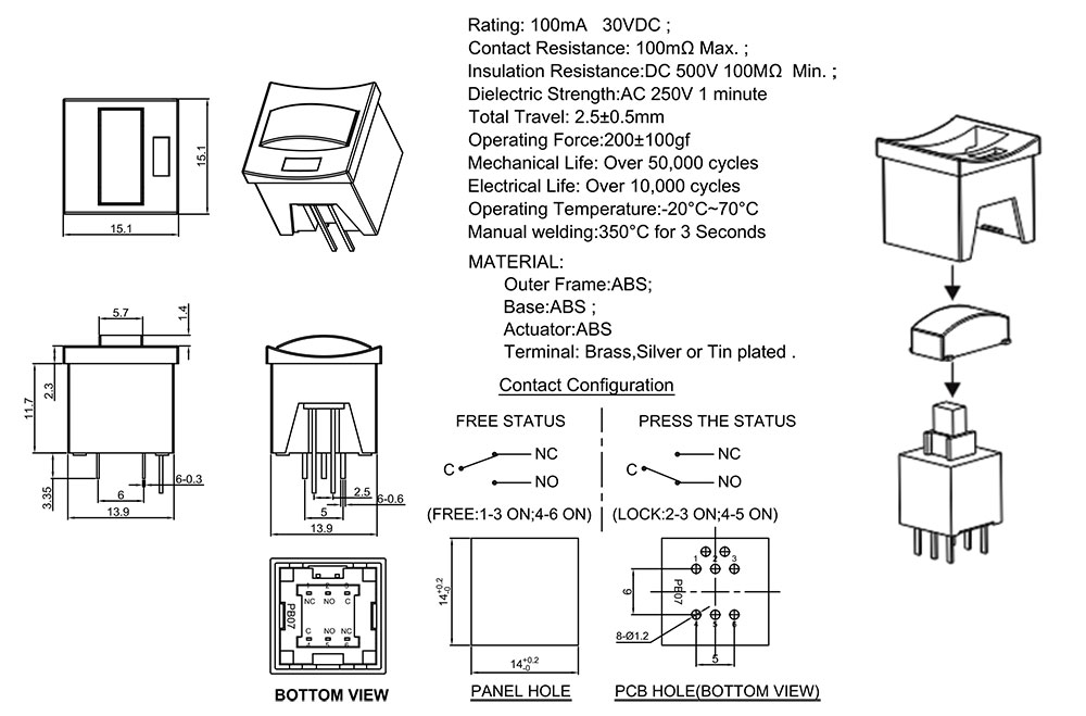 Operating Force:200±100gf