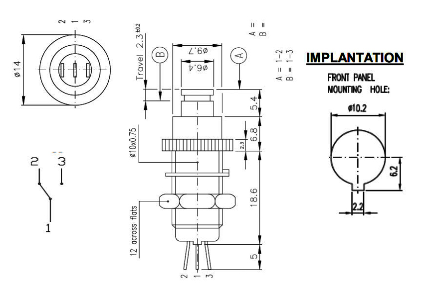panel mounting holeof 10 mm dia.