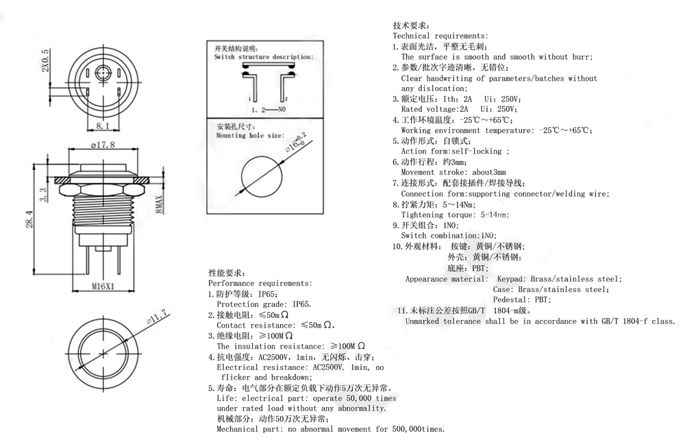 Tightening torque: 5-14nm; Switch combination : 1NO;