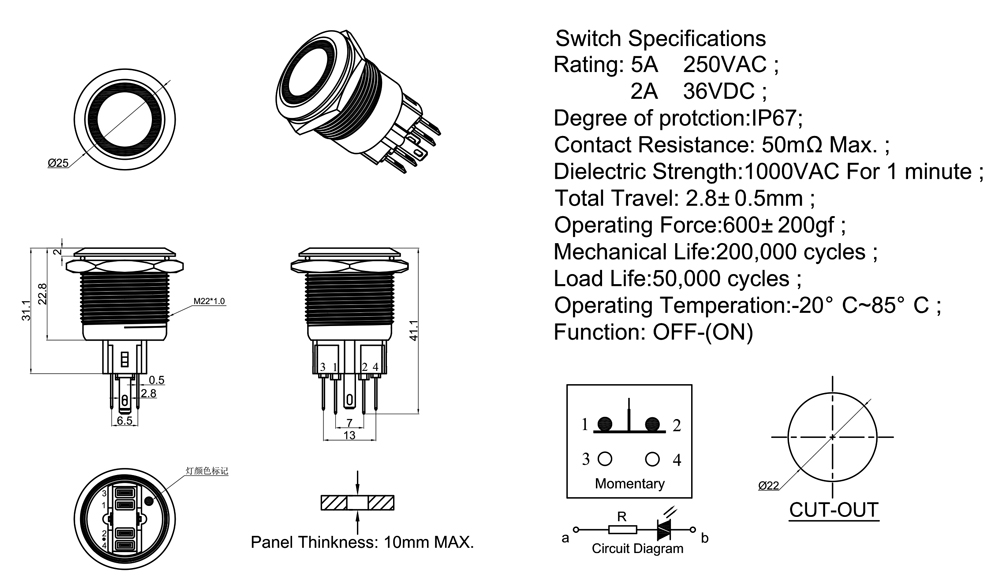 Mechanical Life:200,000 cycles ;