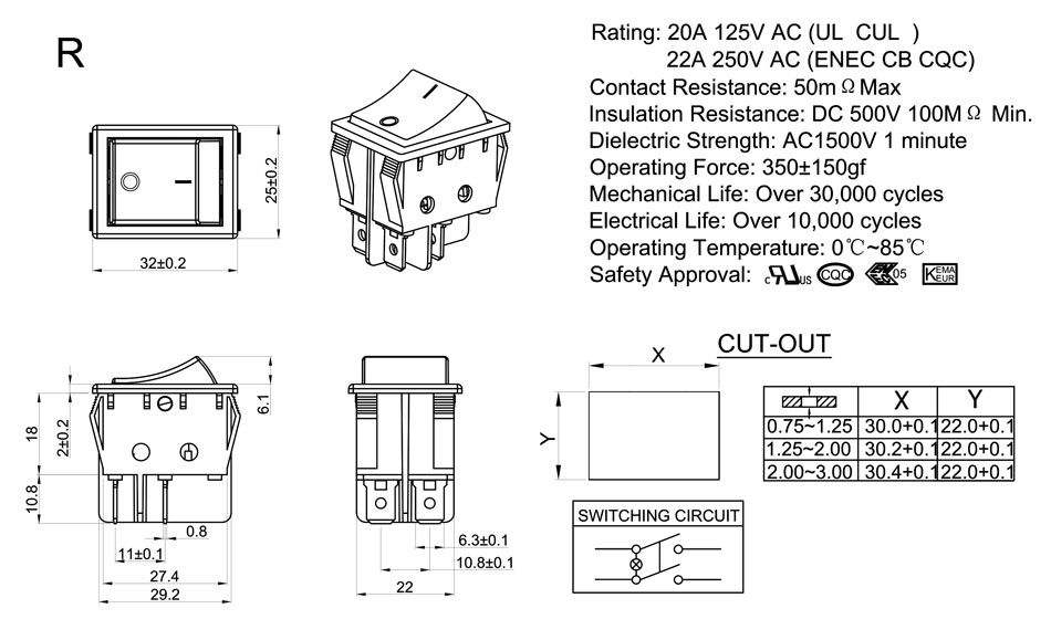 Rating:20A 125V AC (UL CUL)