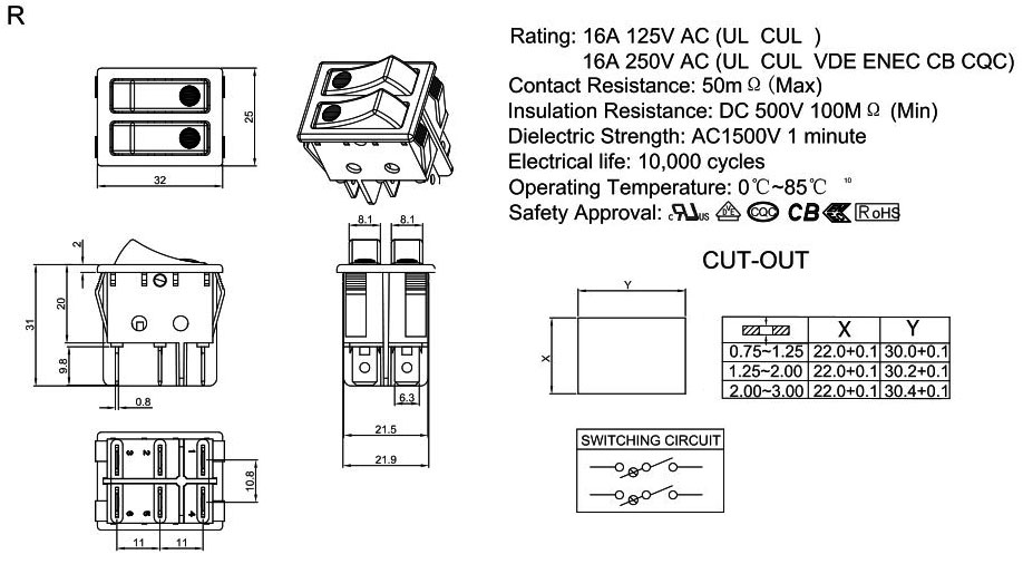 Rating:20A 125V AC (UL CUL)