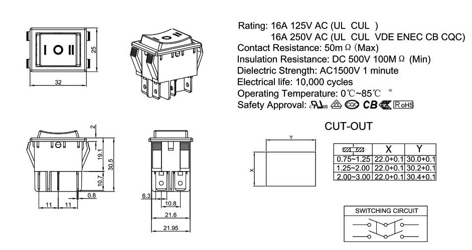 Rating:20A 125V AC (UL CUL)